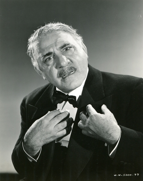 Sig Arno as Henri DuPont, here pictured with a harp, played a violinist in the film “A Song to Remember”. He played the assistant to M. Pleyel, Paris music impresario. He palyed with stars Merle Oberon, Paul Muni and Cornel Wilde as romantic lead.