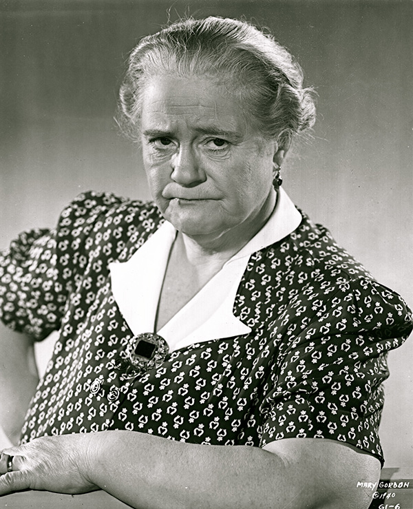 Mary Gordon as Ma McCorkle stands guard over the McCorkle family honor as daughter Mary, played by Paulette Goddard, cavorts with Jimmy Stewart’s character, Jimmy Haskell. Pot O’ Gold, 1941.
