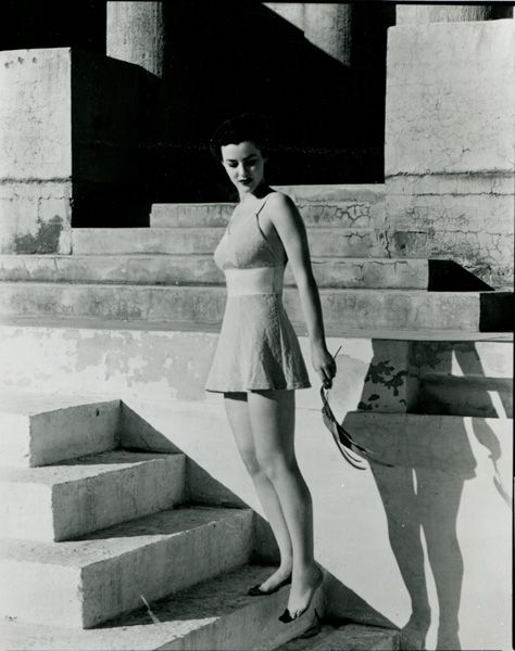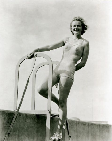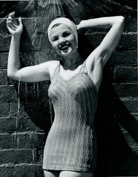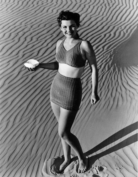 | By the beginning of 1939 many wrinkles in the relationship with Miss Skemp, the head of the Advertising Department at Gantner & Mattern, had been smoothed and settled. Disputes concerning models, backgrounds, poses and settings (locations) for each swimsuit or sweater photograph had largely played out and Miss Skemp came to have a guarded confidence, if not a professional respect for Ned Scott’s photographic ability. Ned Scott had just finished all the photographic work for producer Walter Wanger and director John Ford on Stagecoach, a movie which was quickly capturing the attention of the nation. The Golden Gate International Exposition on Treasure Island had officially opened to the public. Ned Scott’s documentary photographs of the G.G.I.E. had caught the attention of Mr. Gantner, Sr., who found them inspiring and delightful. Characteristically generous and open, Ned Scott made and presented a full set of prints of these images to Mr Gantner who responded with delight and graciousness. With a creative spark of genius, Scott created composite photographs using these images as backgrounds for swimsuit models, and these composites found their way into the advertising program for Gantner & Mattern. After September, the European War began to assert its influence on commodity prices and Gantner & Mattern’s budget, causing anticipated difficulties in swimsuit and sweater production. |
