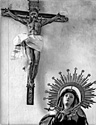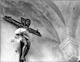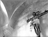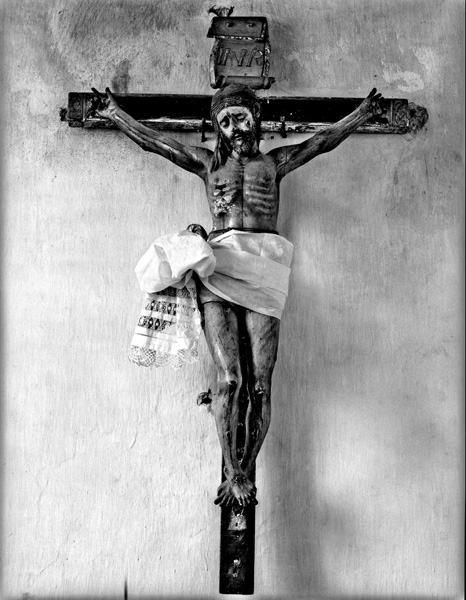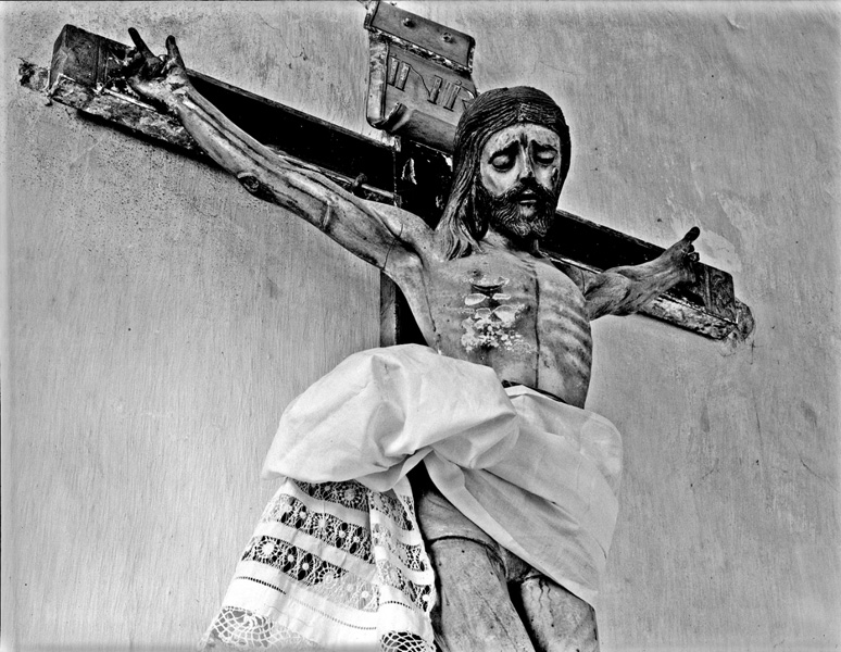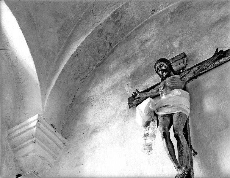 | Among Ned Scott’s 5 x 7 nitrate negatives saved from his photographic experience with the crew of REDES in 1934 are a number of images which depict the environs of the town Alvarado where the film production took place. These scenes which Ned Scott photographed during the summertime midday hours capture the many different flavors of the little fishing pueblo. That the citizens held close to a strong Catholic religious faith may be seen in staunchness of these figurines amid the romanesque arches and pediments of the local church. These figures are suffused with the suffering and pain of humanity, and they recall the influence of the hard-line Jesuit missionaries in Mexican culture post AD 1521. To be real and relevant, one has to suffer, just like Christ and Mary. Ned Scott was drawn to these no doubt because few items of like kind existed in churches in the United States, and certainly this was true of New York City where Ned had just spent the last four years of his life prior to the REDES film expedition. It was no mistake that Paul Strand, producer of the film, had spent the prior year within Mexico itself traveling and photographing as opportunities were presented, and he had grabbed similar images in other churches in his wanderings. Whether Ned Scott was influenced by Strand’s experience or not makes no difference. These images are Ned Scott’s statement of the religious life and deeply set tradition of the fishermen in Alvarado. |