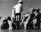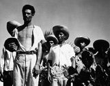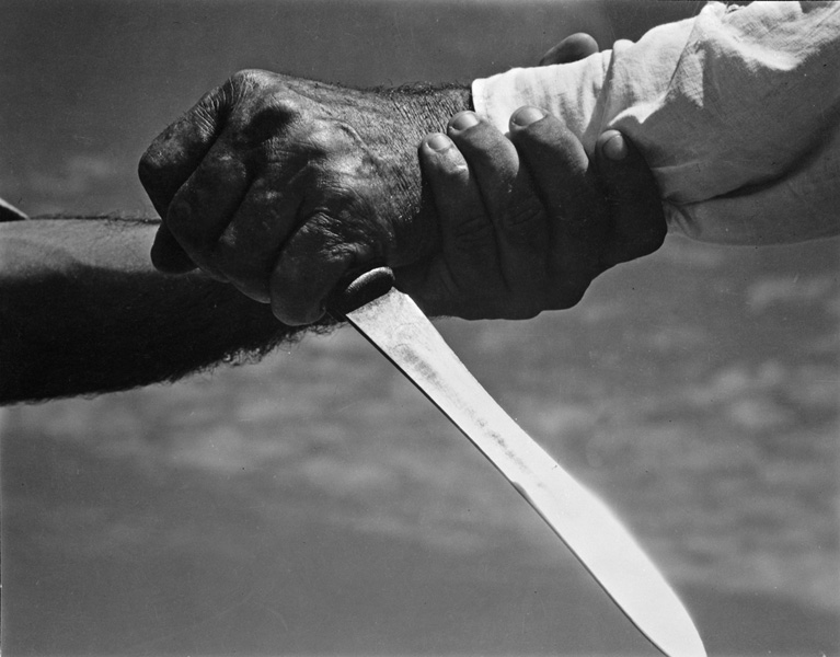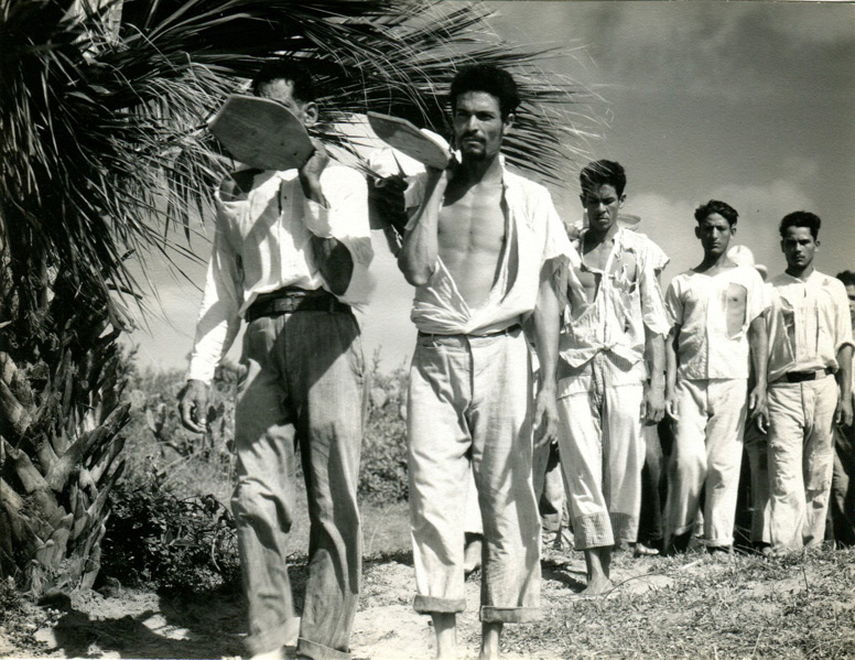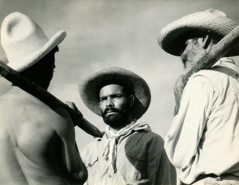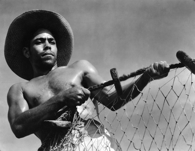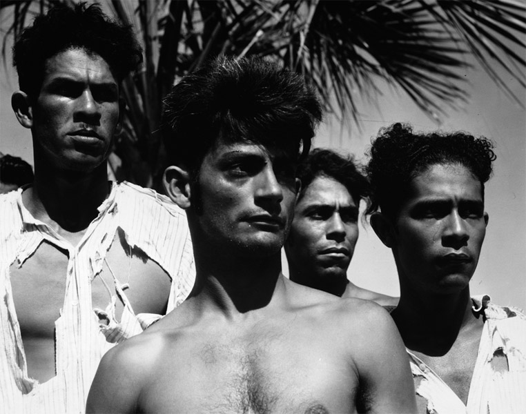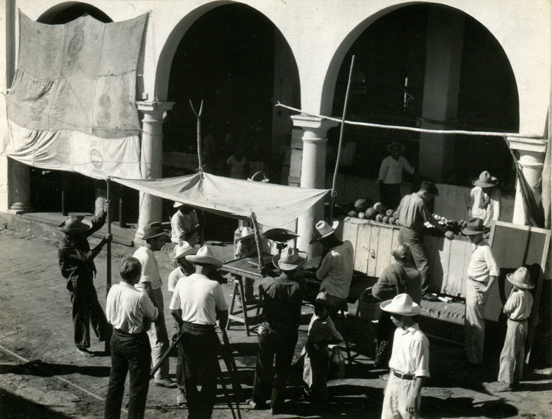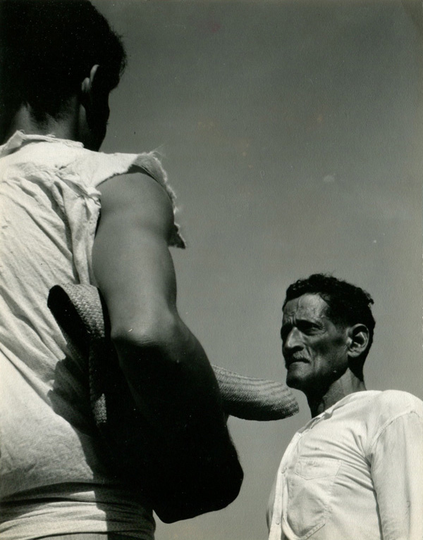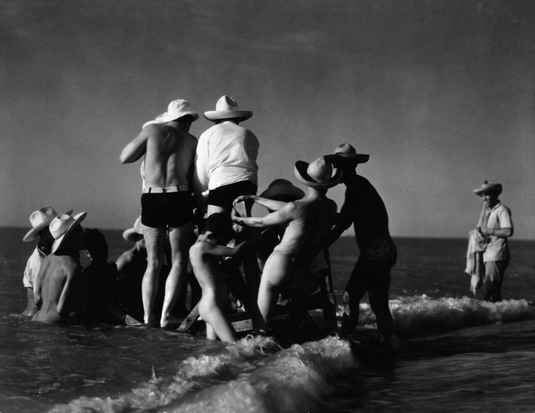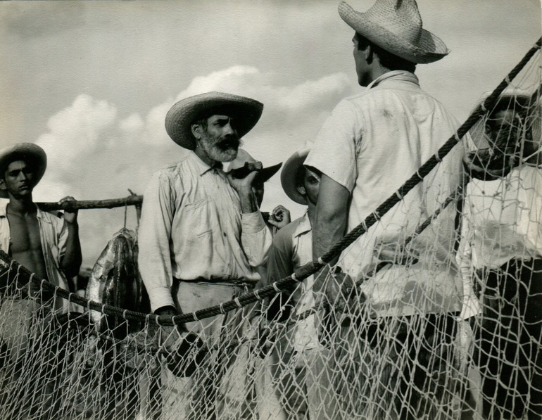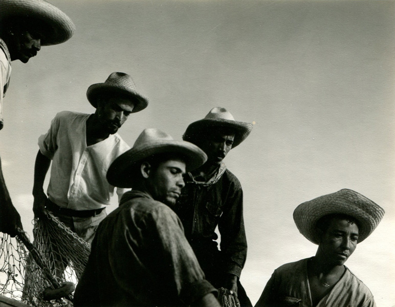 These Redes film production stills chronicle the story of the making of the film from the beginning to the ending. There are stills which portray the distrust and anger felt by the fishermen of Alvarado for their fish buyers and their masters. One gets the sense that life was hard for the crews of the fishing boats, that their accommodations on land left lots to be desired and that few if any pleasures came their way. Death is but another way of life for these men, as the burial procession of Miro attests. Paul Strand shows up in these images behind the hand-cranked Akeley 16 mm movie camera. Fred Zinnemann appears as the film’s director in several scenes. Henwar Rodakiewicz shows up here, the man who wrote the script, edited the film along with Gunther von Fritsch and helped hold things together when times were tricky during filming. One of the things which Fred Zinnemann wrote about Ned Scott’s stills of this movie in his autobiography was a huge tribute. He said that these stills were “classics”. Many of these have found their way into publications over the years, the latest being the Aperture Foundation book “Paul Strand in Mexico” by James Krippner (2010).  Redes film production stills were created only by Ned Scott with his 5 x 7 Graflex camera.