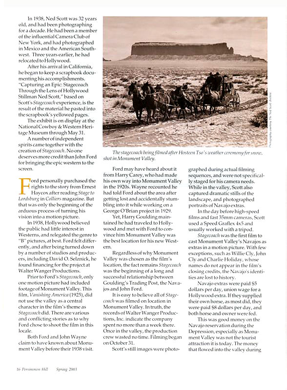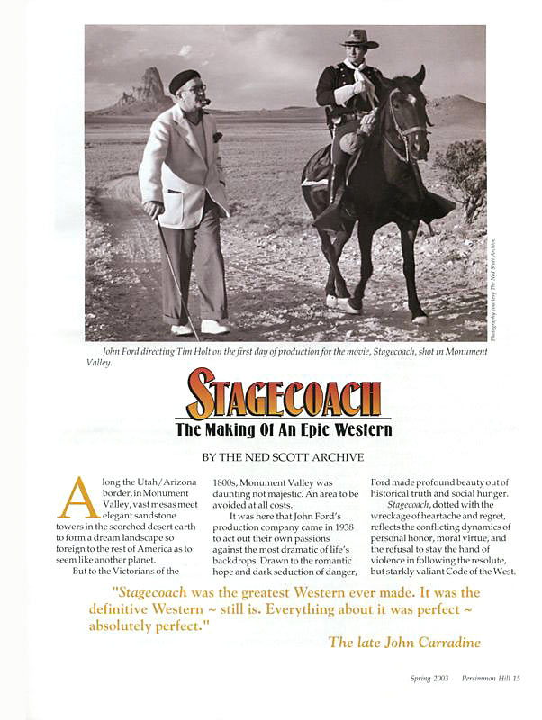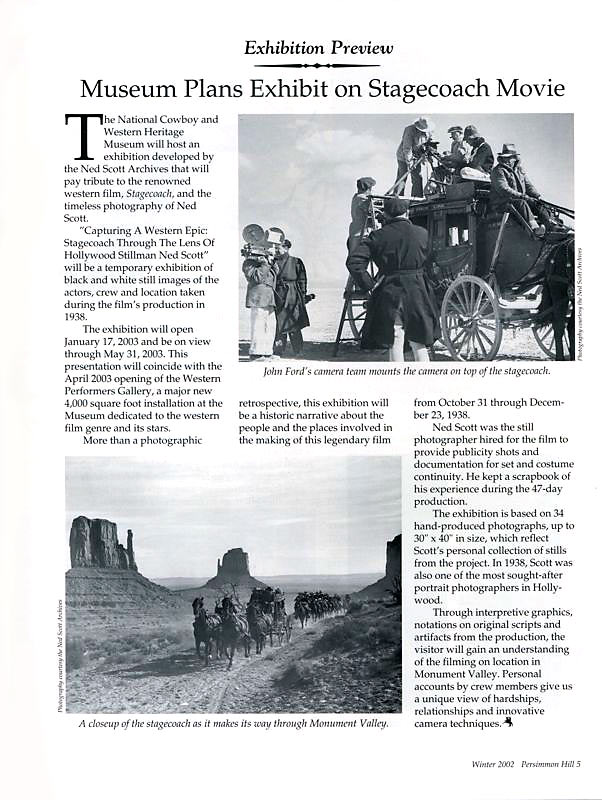 | Article from the Spring of 1993 in the magazine “Persimmon Hill”, a publication of the National Cowboy and Western Heritage Museum in Oklahoma City. An exhibit of John Ford’s 1938 “Stagecoach”, was the inaugural exhibit for the museum’s Western Performers’ Gallery. |